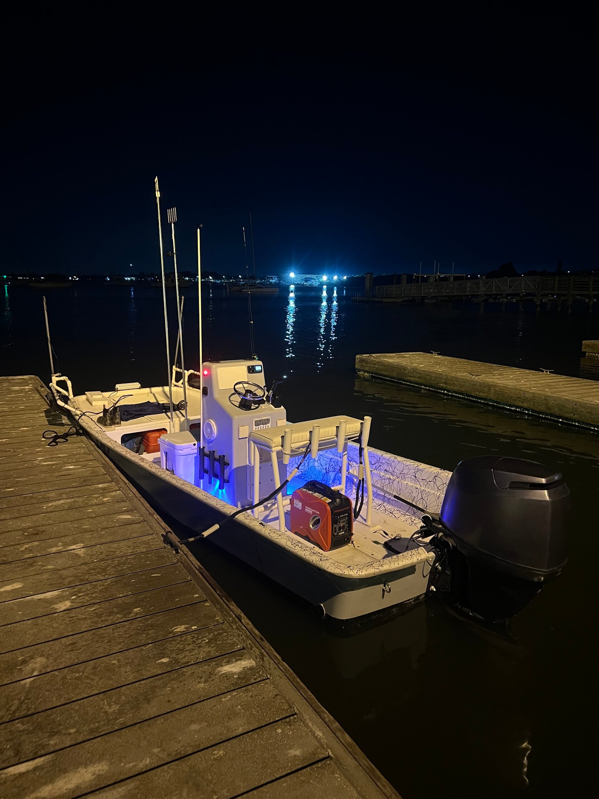 Our custom-designed Carolina Skiff is equipped with everything you need for a successful night on the water. Featuring state-of-the-art lighting, ample deck space, and comfortable seating, our boat ensures a smooth and enjoyable experience. Safety is our top priority, and our vessel is meticulously maintained and fully equipped with all necessary safety equipment.